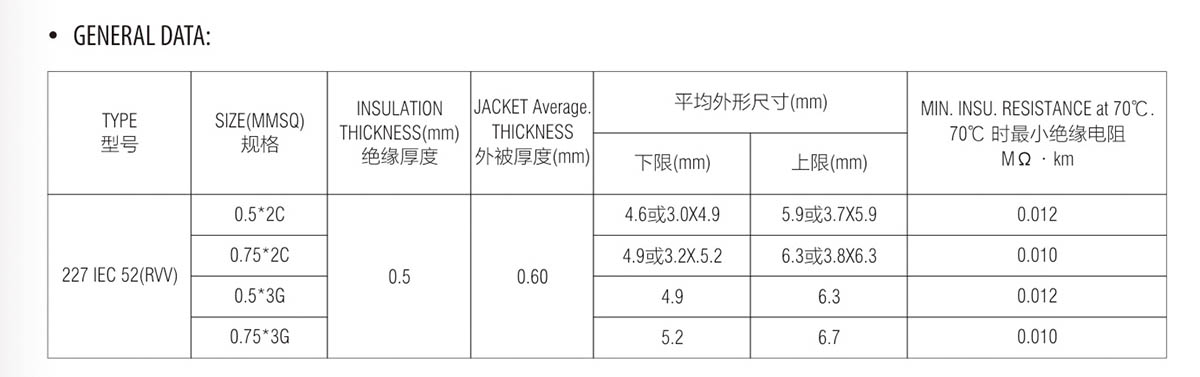 絕緣材質(zhì): PVC/E型聚氯乙烯混合物。